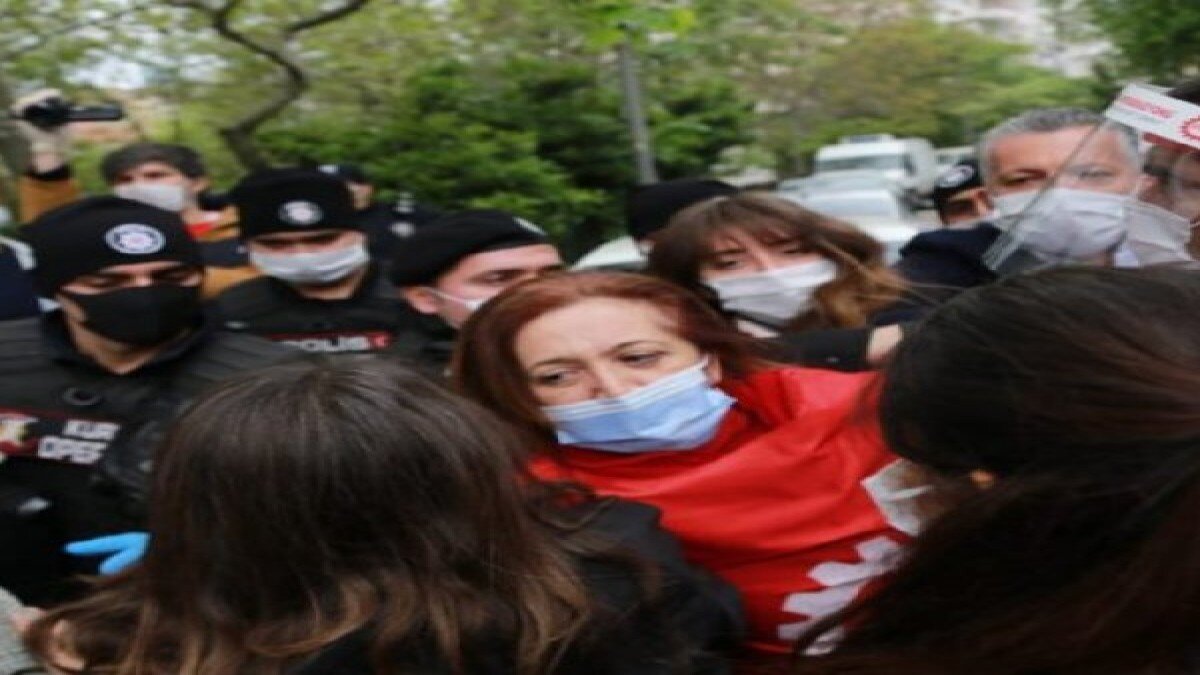 Polis ekipleri, aralarında DİSK Genel Başkanı Arzu Çerkezoğlu'nun da bulunduğu 13 kişiyi gözaltına aldı.