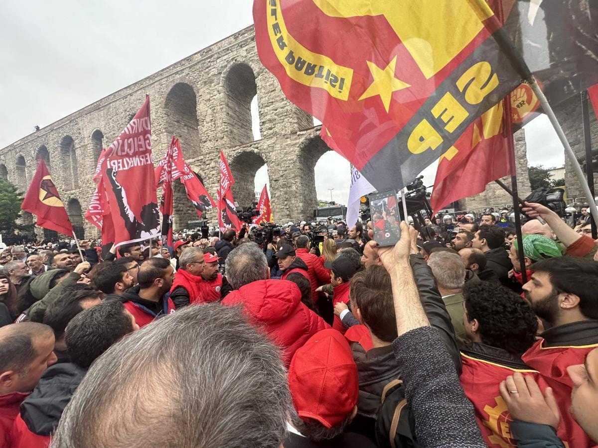 Taksim Meydanı’na yürümek için Saraçhane'de toplanan sendikalardan DİSK ve Kamu Emekçileri Sendikaları Konfederasyonu (KESK), Taksim'e yürümekten vazgeçti.