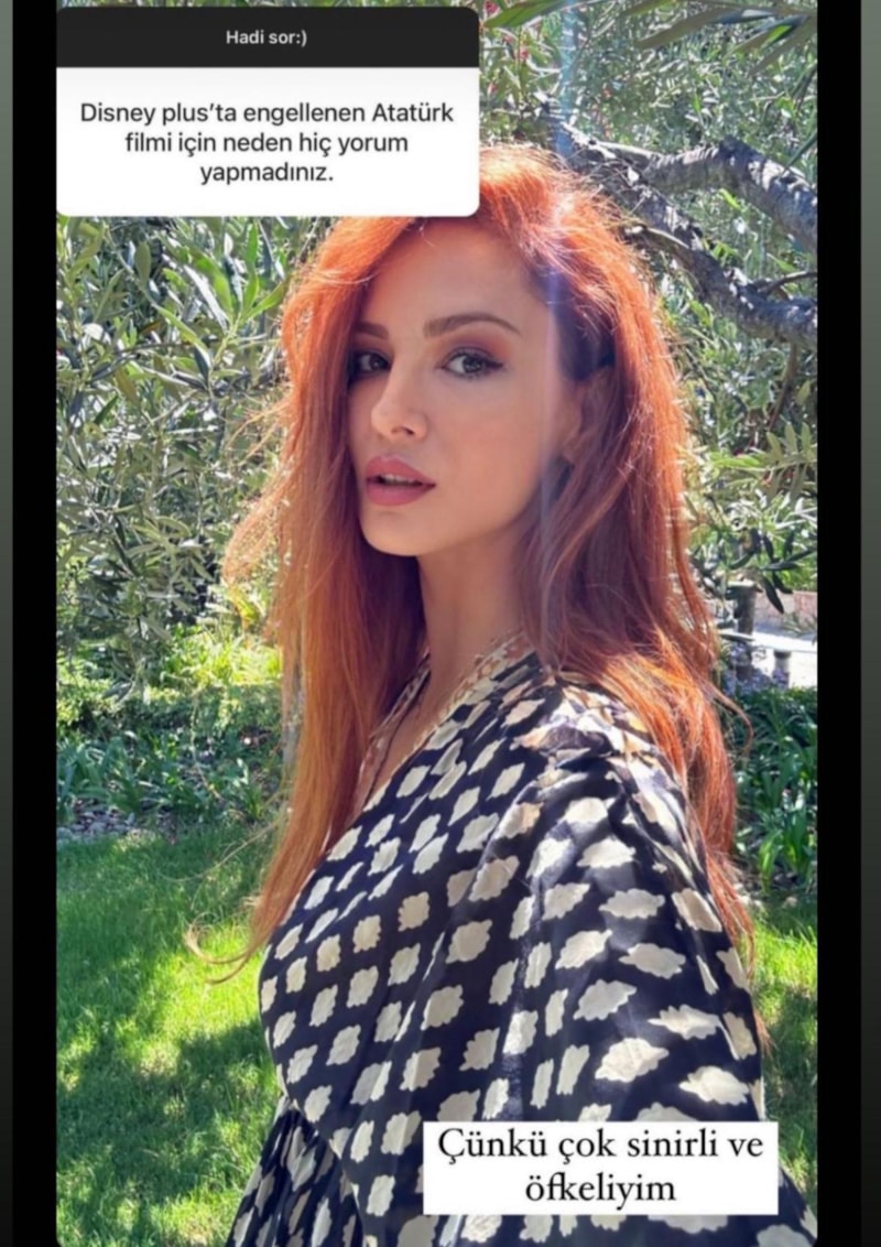 29 Ekim'de çıkması beklenen Atatürk dizisini yayınlamaktan vazgeçen Disney Plus konusuna dair bir soru da Mine Tugay'a soruldu. Neden sessiz kaldığı sorulan Tugay'ın yanıtı" Çünkü çok sinirli ve öfkeliyim" oldu.