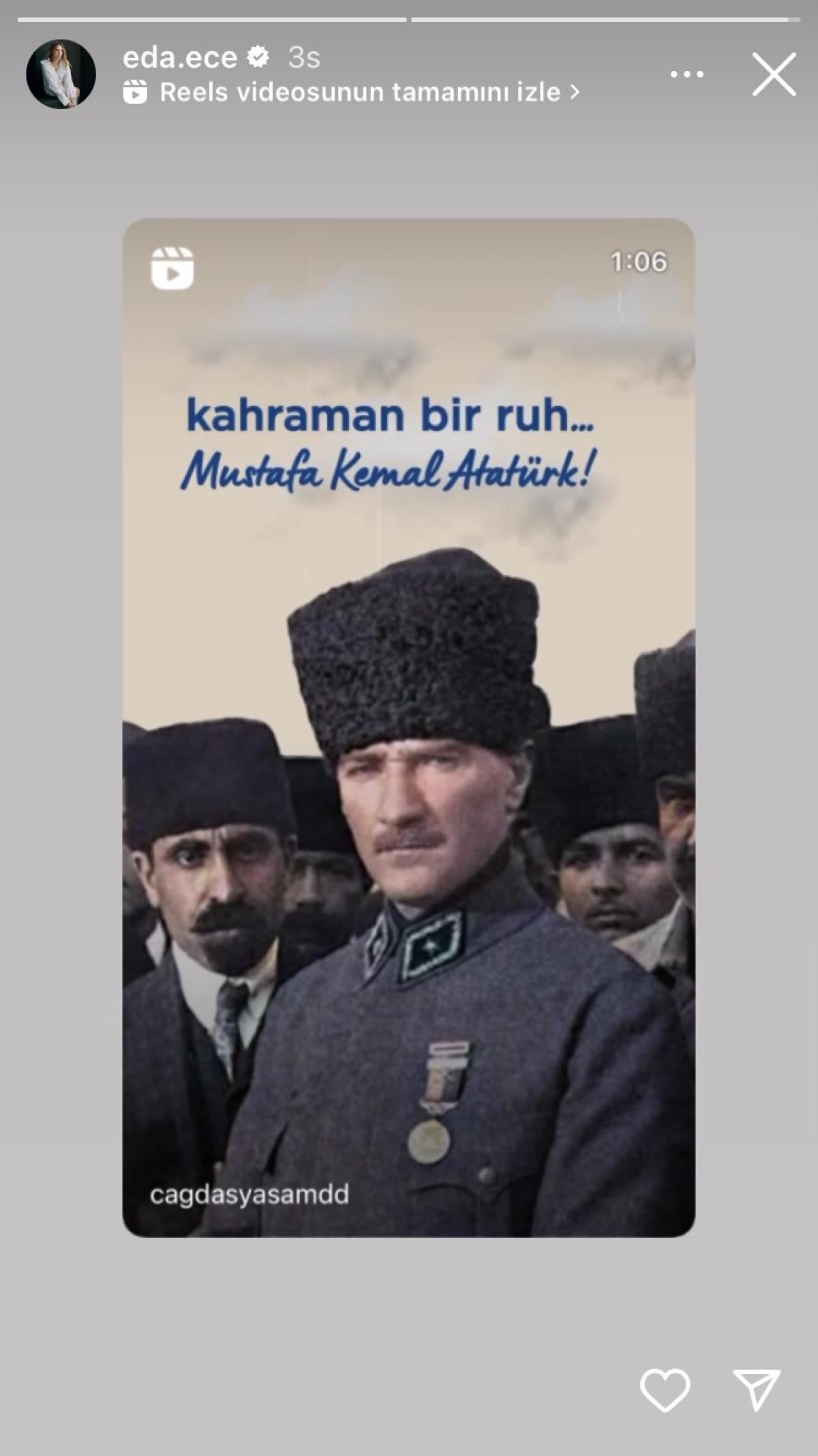 Ece bugün de Instagram hesabında bol bol Atatürk storysi attı.