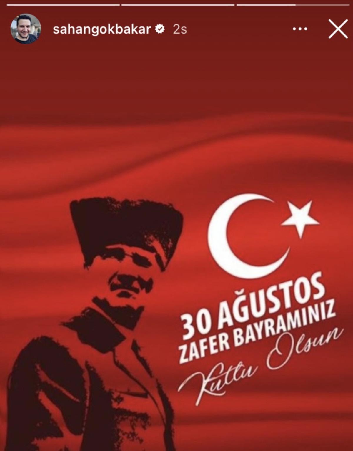 Gökbakar, aktif şekilde kullandığı Twitter'dan bugüne özel paylaşım yapmazken Atatürk paylaşımını Instagram'dan yaptı.