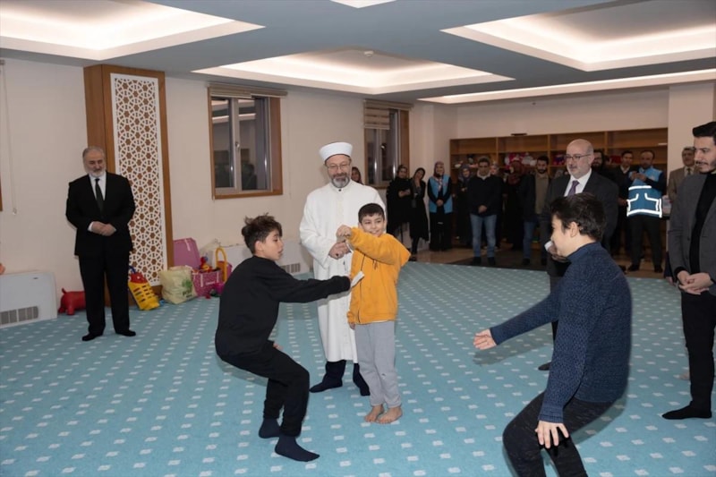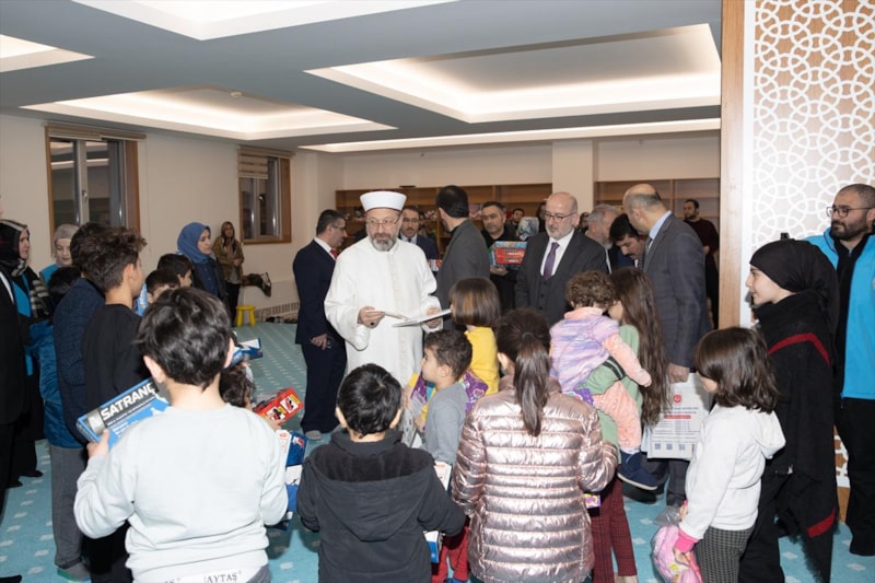 Daha sonra depremzede çocuklarla sohbet eden Başkan Erbaş, çocuklara oyuncak ve kitap hediye etti.