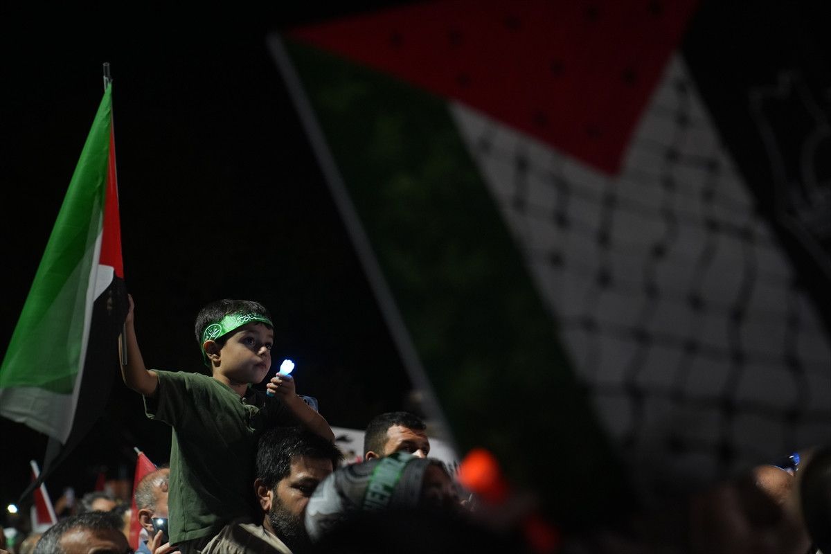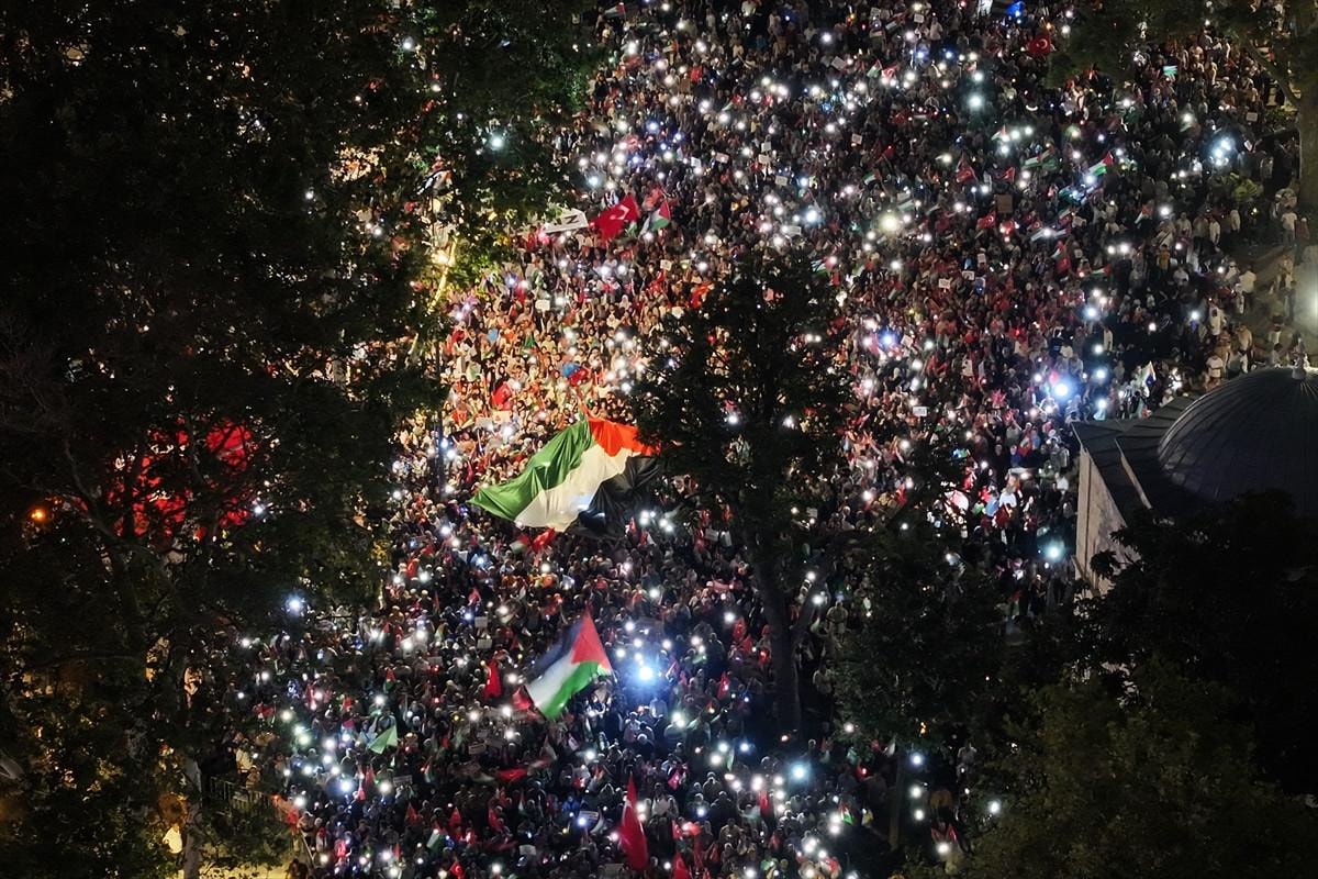 Filistin'e Destek Platformu'nun, "Gazze'ye Umut Işığı Ol" sloganı ile düzenlediği yürüyüşe 100 binden fazla kişinin katıldığı öğrenildi.
