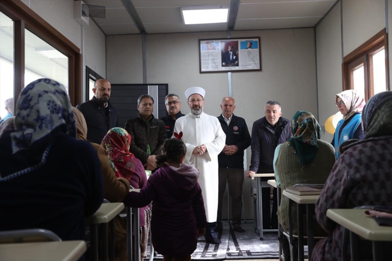 Erbaş, ayrıca konteyner kentte yetişkinler için açılan Kur'an kursunu da ziyaret ederek vatandaşlara geçmiş olsun dileklerini iletti.