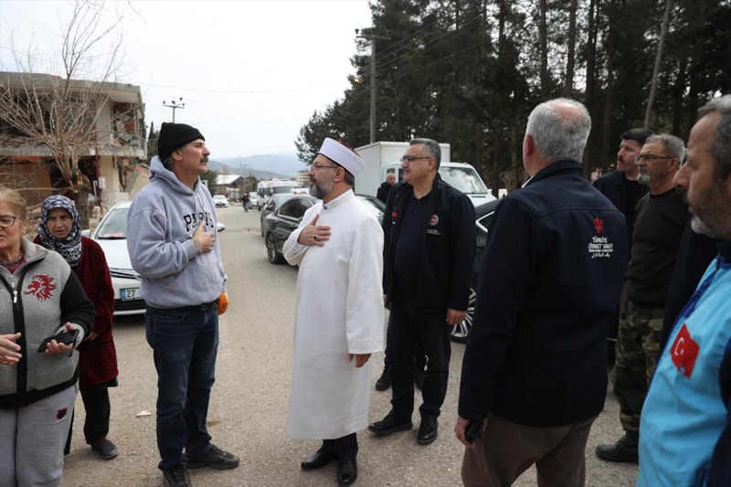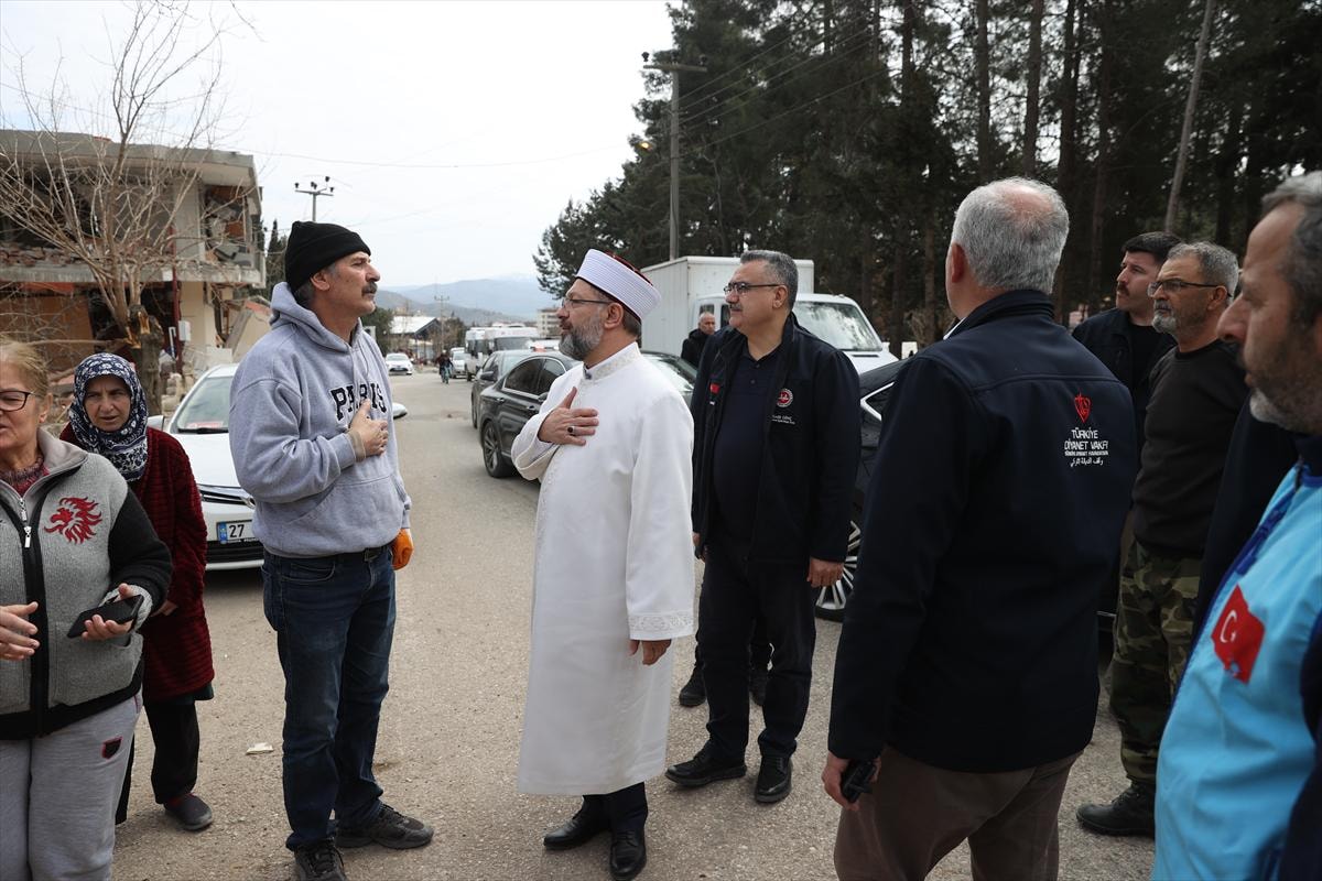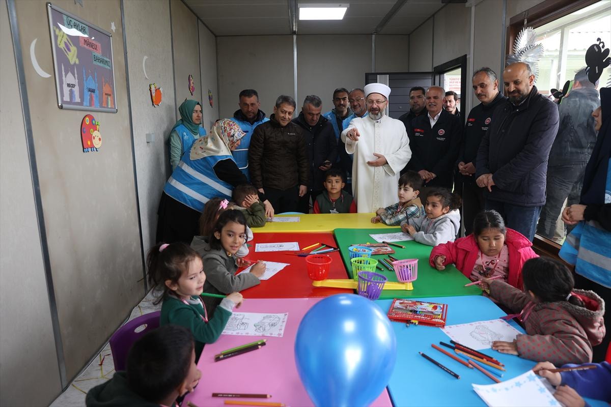 Erbaş, "asrın felaketi" olarak nitelenen depremlerden etkilenen ilçedeki konteyner kentte depremzedelerle bir araya geldi.