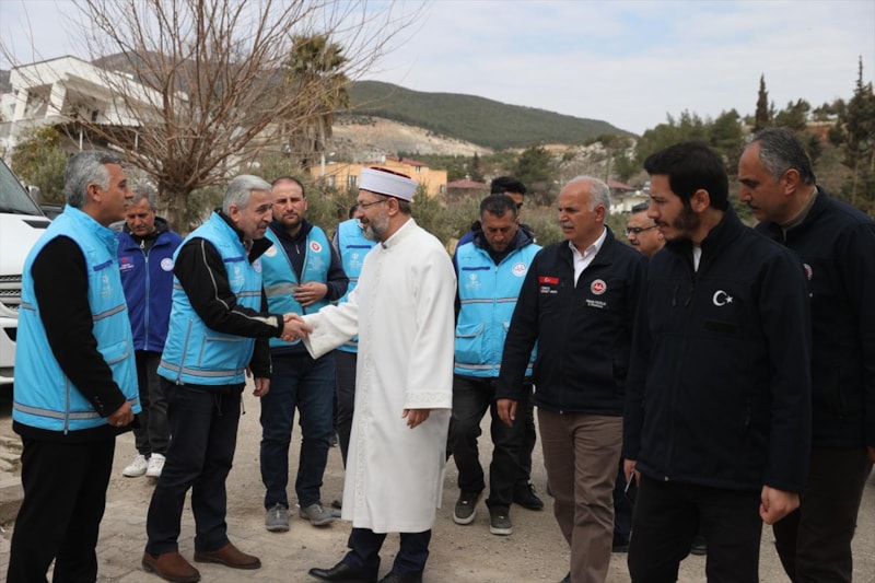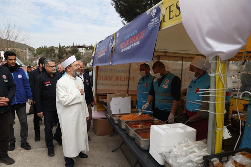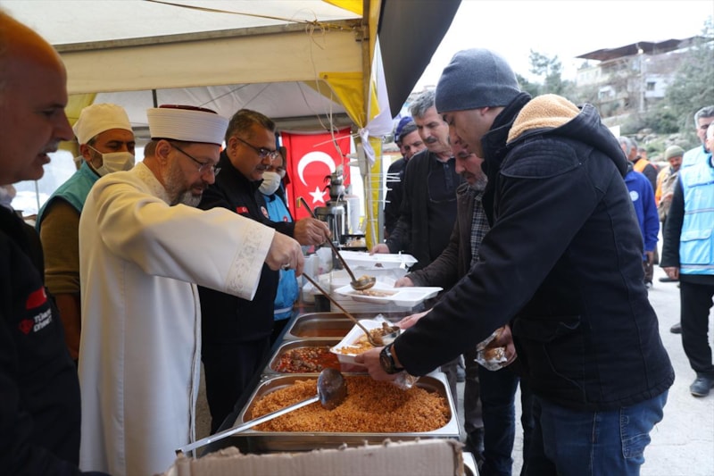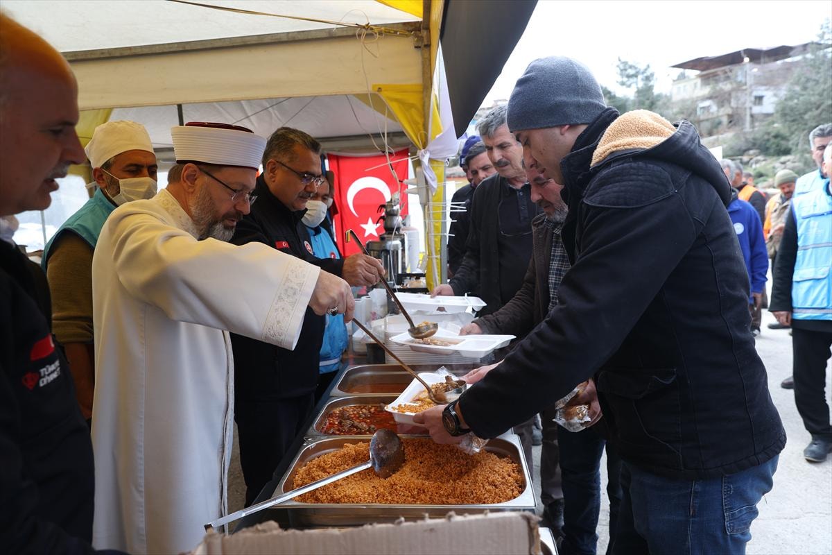 Daha sonra Nurdağı merkezde kurulan Diyanet İşleri Başkanlığı ve Türkiye Diyanet Vakfı Deprem Koordinasyon Merkezi'ne geçen Erbaş, incelemelerde bulunarak çalışmalara ilişkin bilgi aldı, ardından aşevinde vatandaşlara yemek dağıttı.
