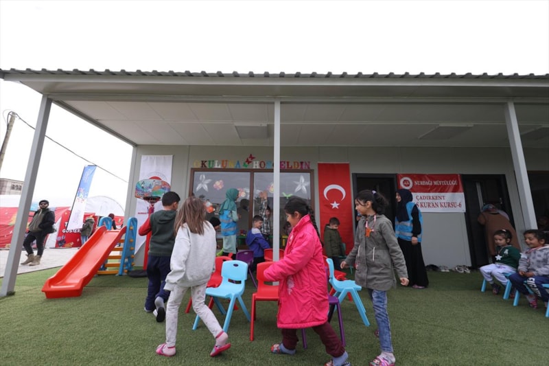 Burada geçici olarak açılan Çadırkent 4-6 yaş Kur'an Kursu, Destekleme ve Yetiştirme Kursu, Tek Yürek Türkiye İlkokulu ve Ortaokulu'na ziyarette bulunan Erbaş, eğitim gören çocuklarla buluştu.