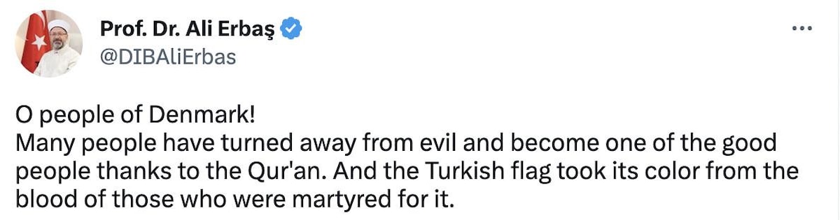 Ali Erbaş, Danimarkalılara Kur'an-ı Kerim okuma çağrısında bulunduğu mesajında şöyle dedi: