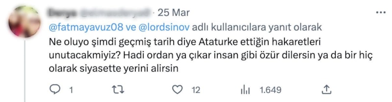 Yavuz tepkilerin ardından bir paylaşımda daha bulundu.