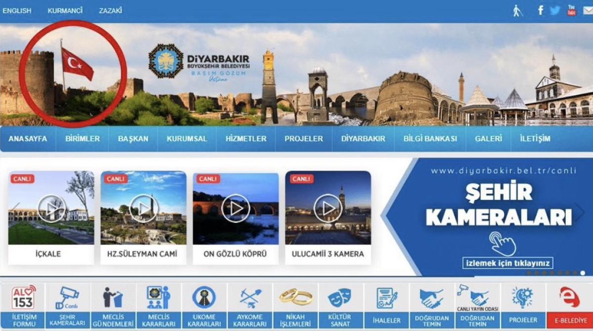 Bu kez de DEM Parti yönetimindeki Diyarbakır Büyükşehir Belediyesi'nin resmi internet sitesinde yer alan Türk bayrağı kaldırıldı.