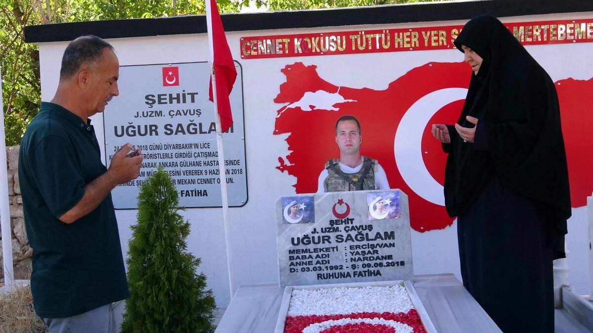 3 yıldır her gün İlçeye bağlı Vanyolu Mahallesi'ndeki şehit oğlunun kabrini ziyaret eden Yaşar Sağlam, duygu dolu anlar yaşadı. Yaşar Sağlam, "Oğlum, Lice ilçesinin Birlik Köyü kırsalında şehit düştü. Her gün eşimle birlikte ziyaret edip kabrini suluyor, bakımını yapıyoruz. Şehit oğlum ile gurur duyuyoruz. Vatanı ve milleti için şehitlik makamına ulaştı. Şehit oğlum Uğur, her gece rüyalarıma geliyor ve bana kabrinin olduğu yerde şehitlik anıtı yaptırmamı istiyordu. Biz de eşimle karar verip, şehitlik anıtını yapıp rüyasında bizden talep ettiği isteği yerine getirdik" dedi.