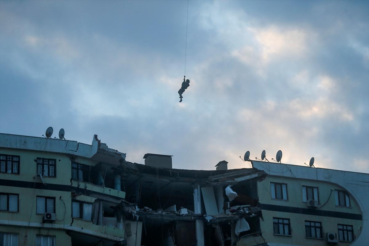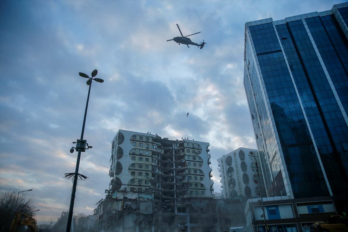 Mehmetçik hasarlı binaya helikopterle çatıdan girdi