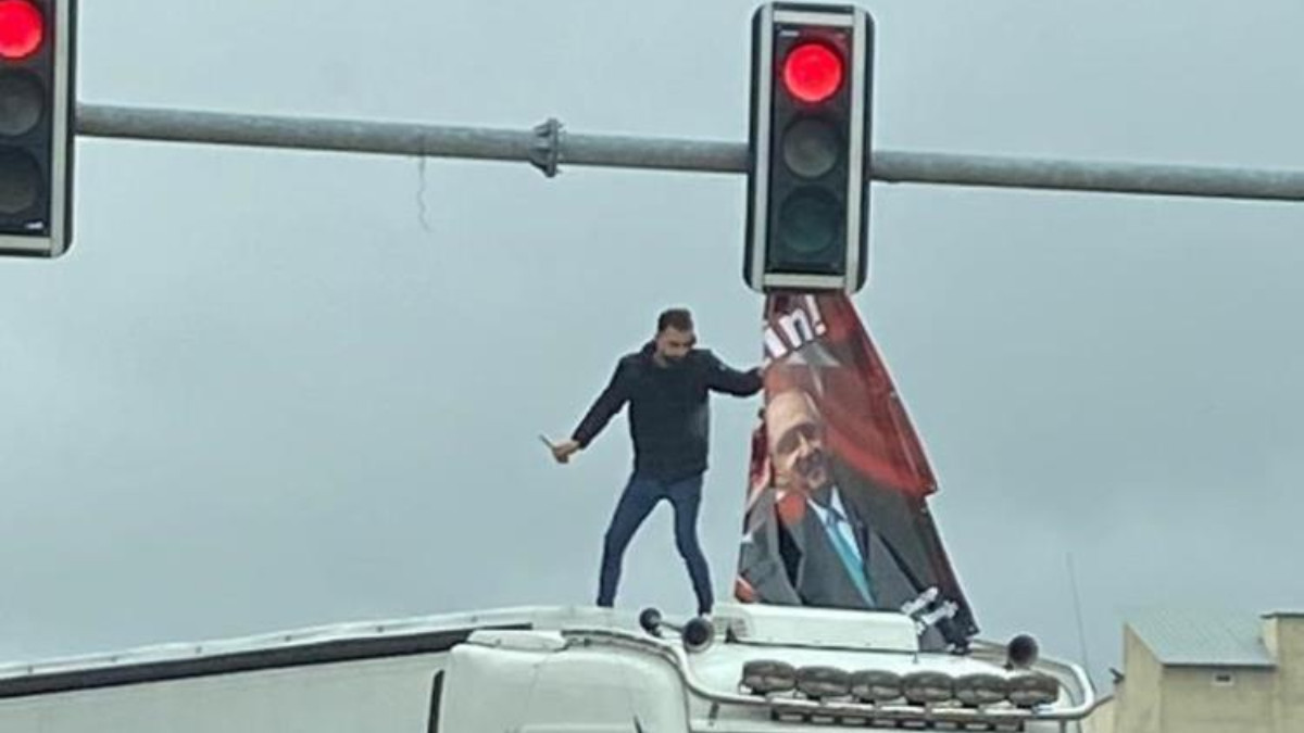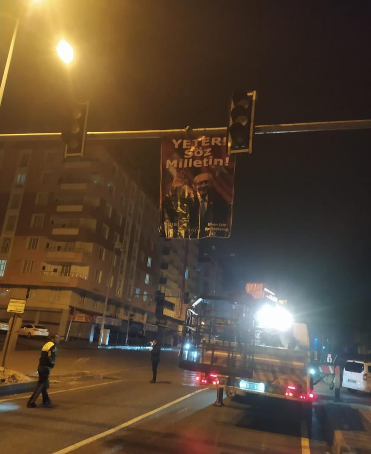 CHP Diyarbakır İl Başkanlığı, CHP Genel Başkanı Kemal Kılıçdaroğlu’nun bulunduğu “Yeter, söz milletin” pankartının indirildiği anları paylaşmıştı.