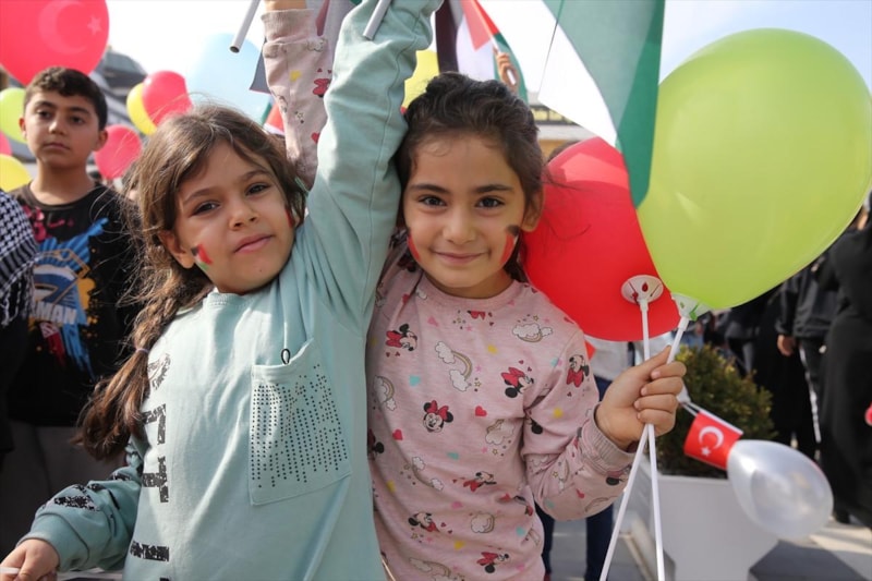 Çocuklar sık sık "Gazzeli çocuklar oyun oynasın" sloganı attı.