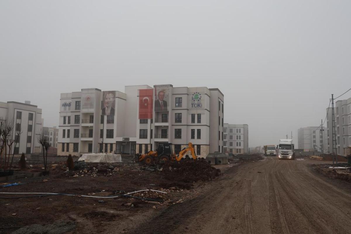 6 bin 40 deprem konutundan oluşan 321 bloktan bir kısmının inşaatının büyük bölümü tamamlanırken, kaba inşaatı biten bloklarda dış cephe işlemleri, kapı, pencere ve mutfak dolaplarının takılması ile çevre düzenleme çalışmaları devam ediyor.
