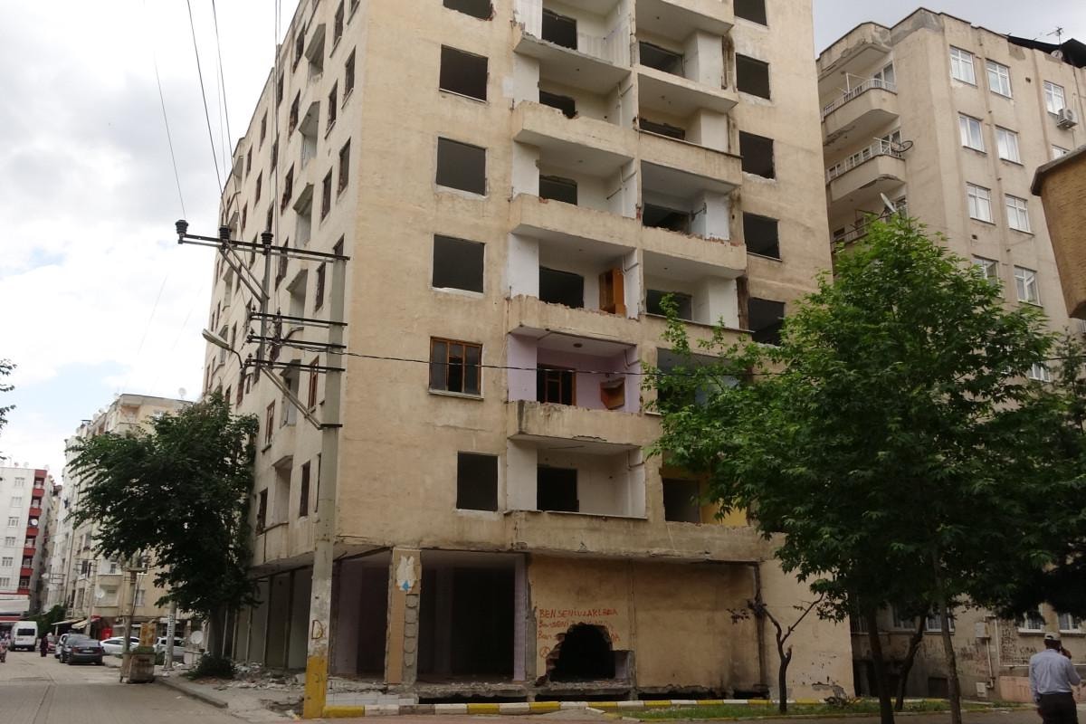 6 Şubat 2023 tarihinde Kahramanmaraş merkezli yıkıcı depremlerden etkilenen Diyarbakır'da hasarlı binaların yıkımı devam ederken, merkez Bağlar ilçesi 5 Nisan Mahallesi 787'nci Sokak'taki 7 katlı İbrahimoğulları Apartmanı ve Baran Apartmanı ile ismi öğrenilemeyen bir bina, depremin üzerinden bir buçuk yıl geçmesine rağmen yıkılmayı bekliyor.