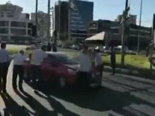 Eylemin bir türlü son bulmaması nedeniyle sinirlenen bir sürücü, aniden gaza basarak protestocuların arasından geçti.