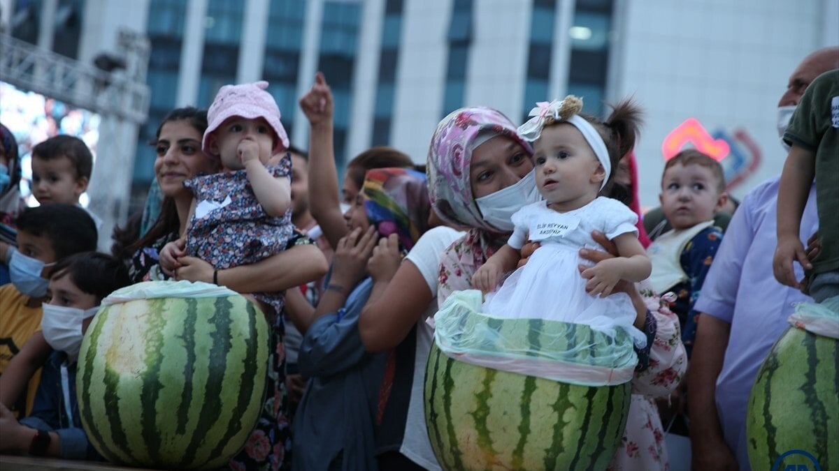 Daha sonra çocuklar arasında karpuz yeme ve yuvarlama yarışması yapıldı.