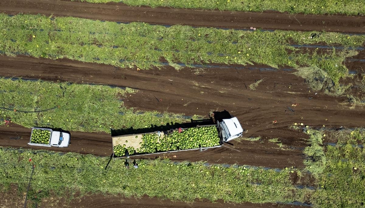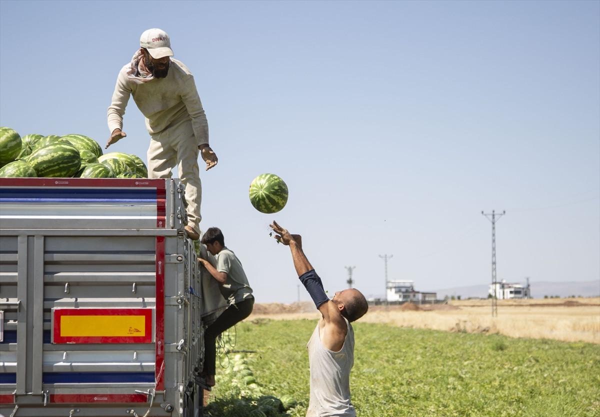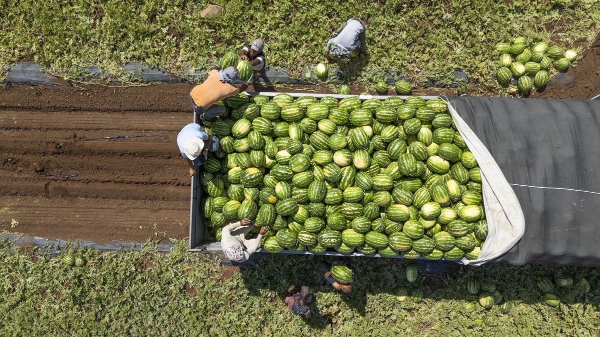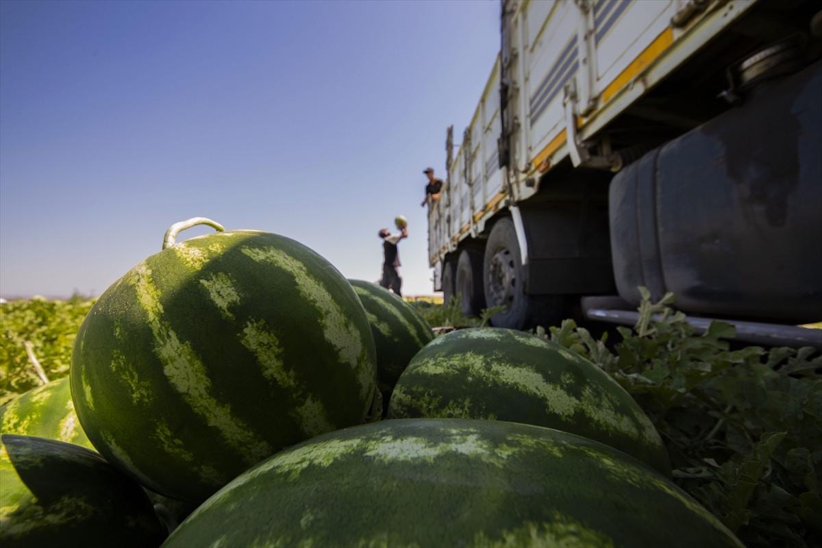 Tarlalardan kamyonlara yüklenen karpuzlar, Türkiye’nin dört bir yanına gönderilerek sofralarda yerini alıyor.