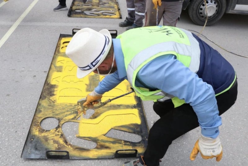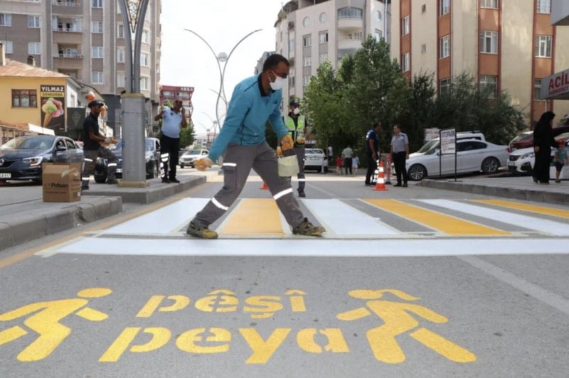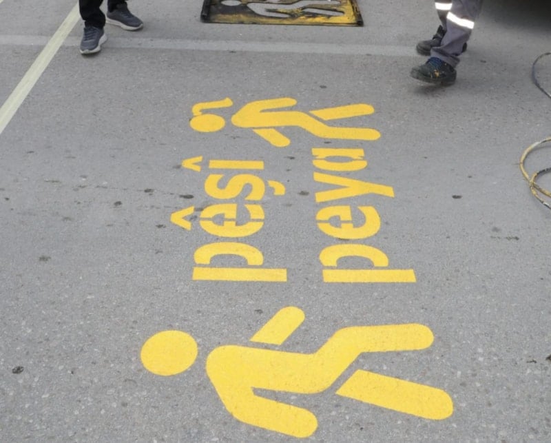Diyarbakır Büyükşehir Belediyesi’nin önündeki Elazığ Caddesi’nde sürücüler için yazılan “Pêşî Peya” ve Hedi (Yavaş) Kürtçe uyarı yazıları, saat 03.00 sıralarında bir kamyonetle gelen 4 kişi tarafından üzerleri boyanarak kapatıldı.