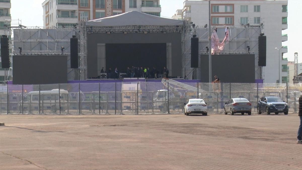 DEM Parti öncülüğünde yapılacak kutlamalarda 3 ton odunun yakılacağı öğrenilirken, 136 bin metrekarelik alanda toplam uzunluğu 10 kilometreyi bulan bariyerler kurulacak.
