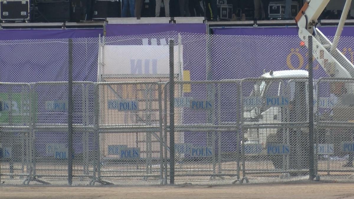 Görevlilerin dışında kimsenin girmemesi için geçen yıl 4 metre yüksekliğinde tel örgü konulan sahnenin önüne bu yıl ise 3 metrelik tel örgü konuldu.