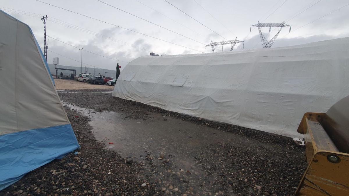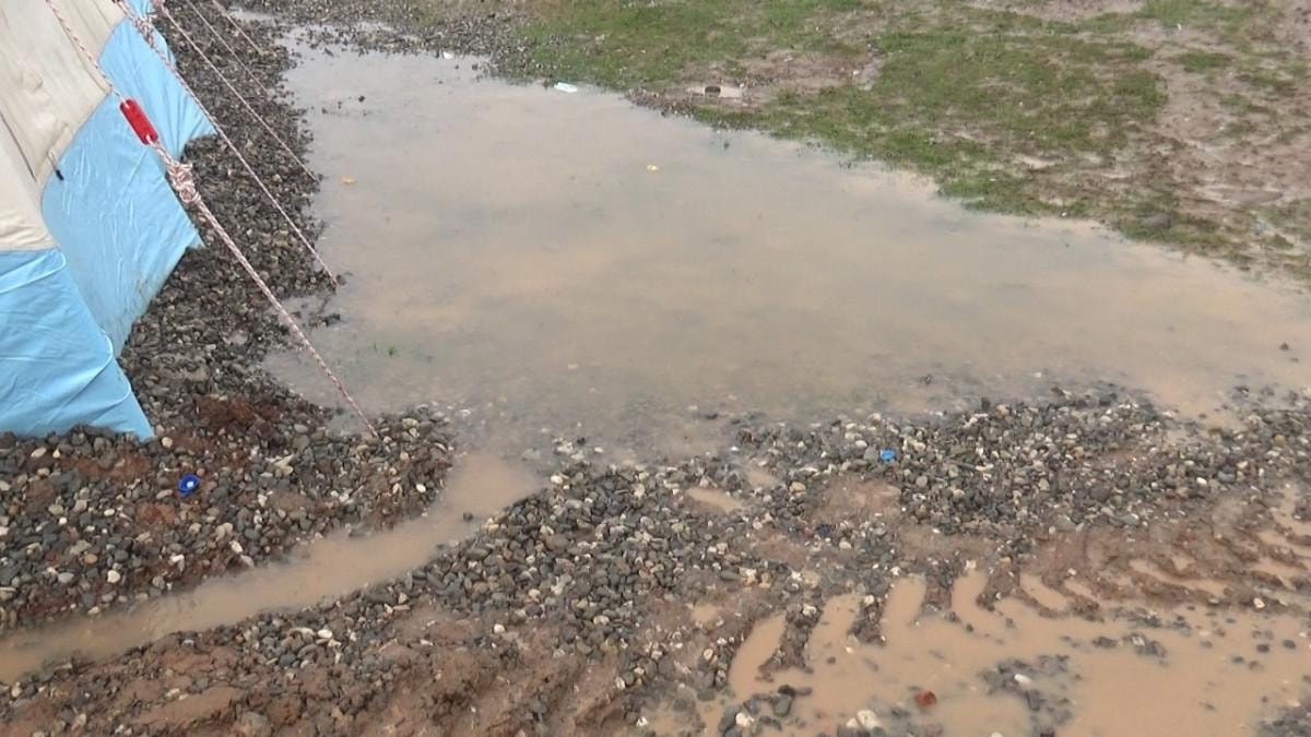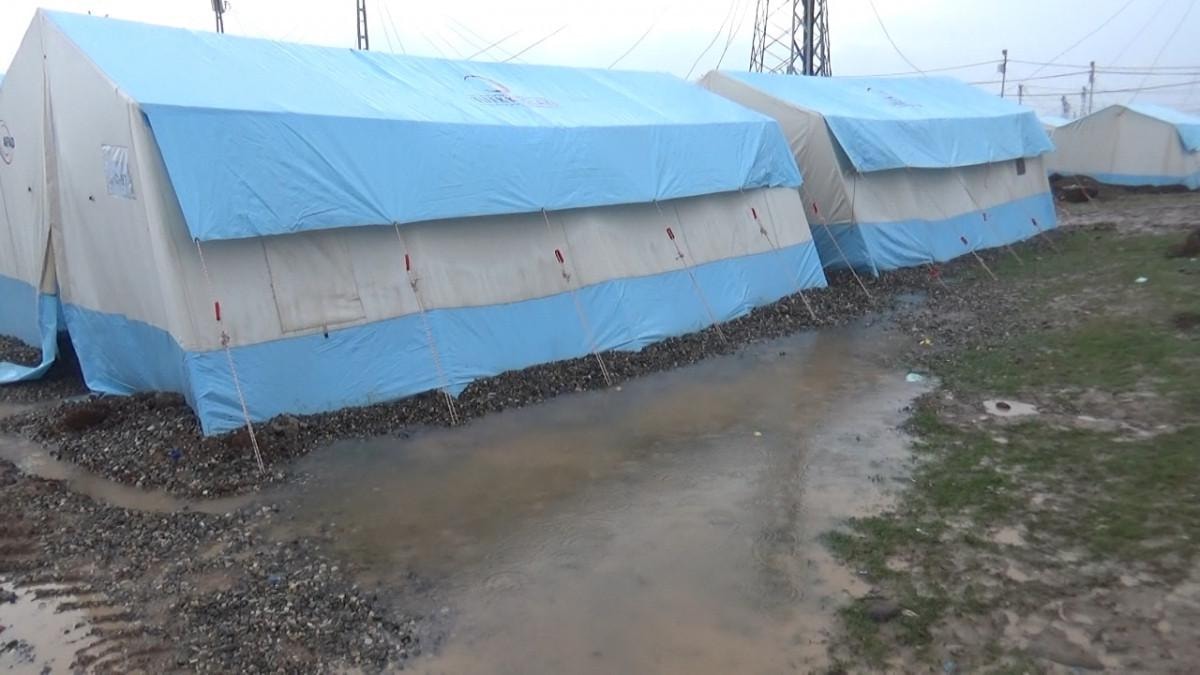 Kentte sabah saatlerinden itibaren etkili olan yağışla birlikte bazı çadırların çevresinde su birikintisi oluştu.