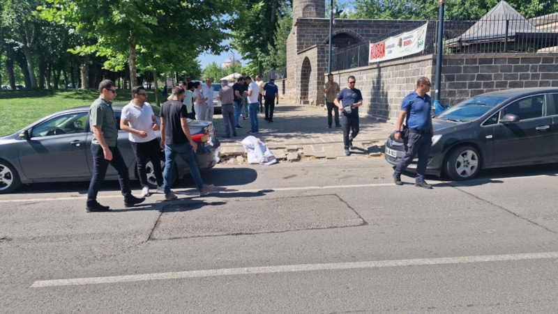 Polis pankartları surlardan kaldırırken, CHP Bağlar İlçe Başkanı’nın da aralarında bulunduğu bazı partililer emniyete götürüldü.