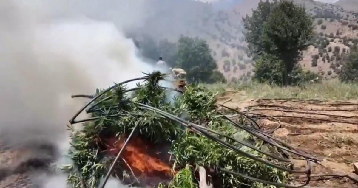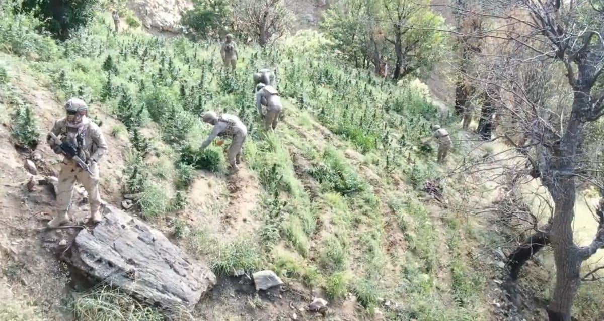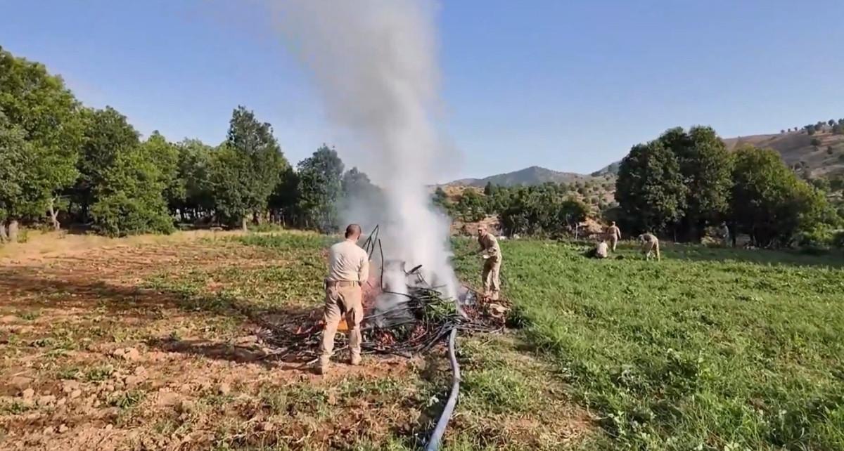 Jandarma tarafından Diyarbakır’da 100 tondan fazla toz esrar elde edilebilecek 4 milyon 459 bin adet kök kenevir ve skunk ile 150 kilogram esrar ele geçirildi.