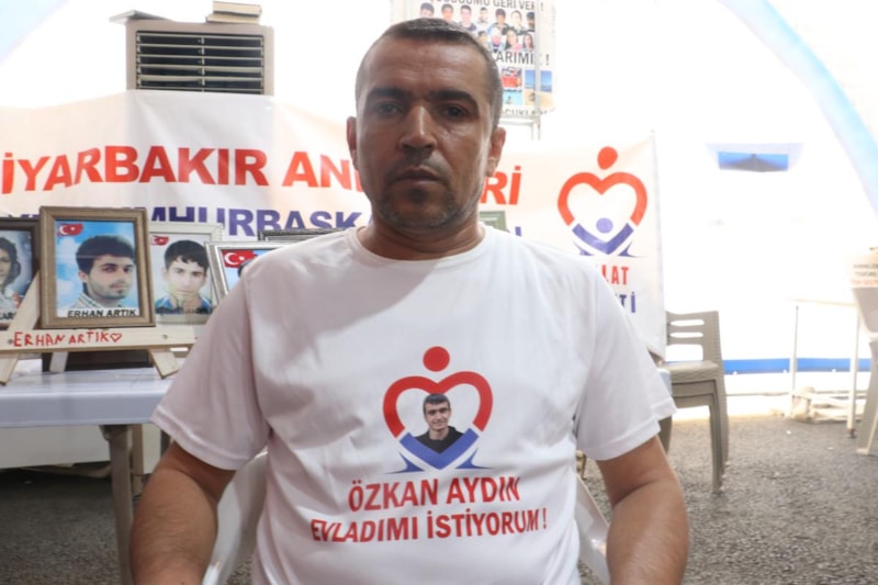 10 yıl önce 15 yaşındayken kaçırılan oğlu Özkan için evlat nöbetini sürdüren Süleyman Aydın, barış sürecinde önceliğin kendi çocuklarına verilmesi gerektiğini belirterek, “Evlat nöbetini kararlı bir şekilde sürdürüyoruz. Oğlum için buradayım. Oğlum Özkan 15 yaşındayken 6’ncı sınıf öğrencisiydi. Okul çıkışı evladımı kandırıyorlar ve 10 yıldır PKK’nın elindedir.