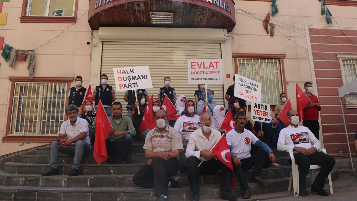 Diyarbakır’da çocukları PKK tarafından dağa kaçırılan ailelerin, HDP İl Başkanlığı önünde 3 Eylül 2019 tarihinde başlattıkları oturma eylemi 715’inci gününde de kararlılıkla sürüyor.