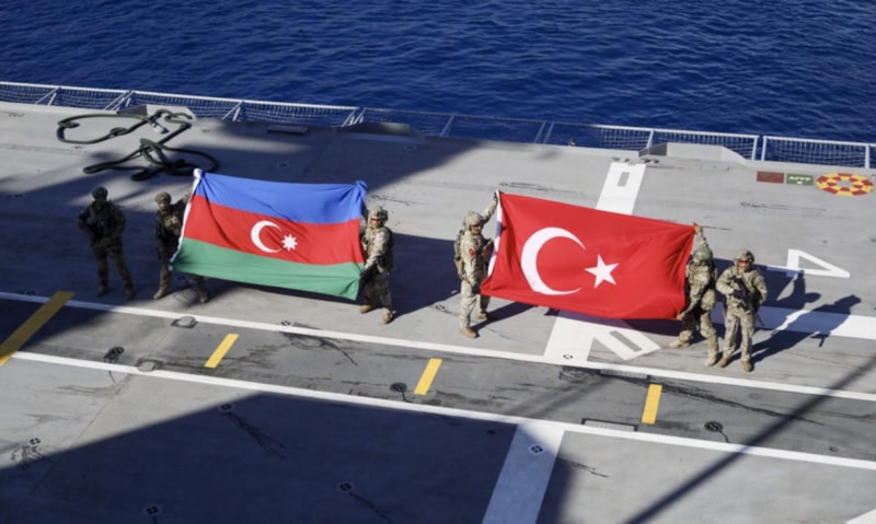 Öte yandan, TCG Anadolu'da Azerbaycan ve Türkiye'nin dostluğuna vurgu yapmak için geminin güvertesine 3 Azerbaycan ve 3 Türk askeri halatlarla indirildi. Askerler güvertede Türkiye ve Azerbaycan bayrağı açarak dostluk mesajı verdi.