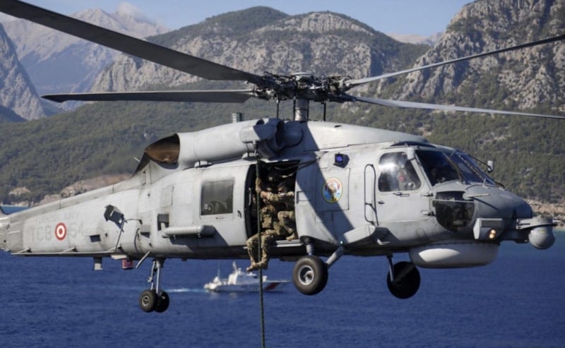 Tatbikat gereği aynı zamanda hastane görevi gören TCG Anadolu'ya Chinook helikopter ile tıbbı cihaz sevkiyatı, helikopter ve denizaltı ile de yaralı sevkiyatı yapıldı.