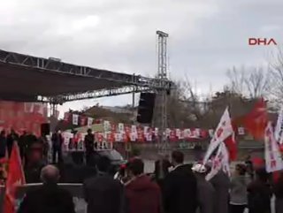 Belediye meydanında toplanan az sayıda kişiye hitap eden Perinçek, 16 Nisan'da yapılacak referandumun Türkiye için çok önemli olduğunu ifade etti.