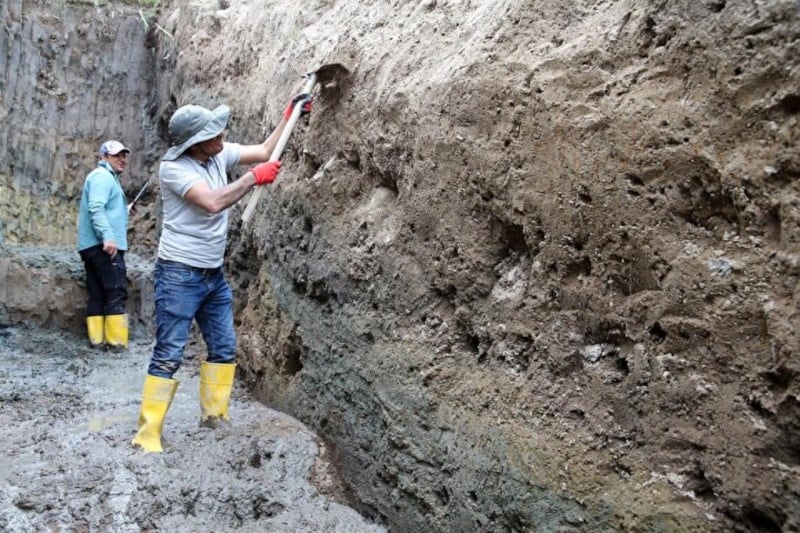Belirlenen bölgelerde 30 metre uzunluğunda, 3 metre genişliğinde ve 4 metre derinliğinde hendekler kazan araştırma ekibi, eski deprem izlerinin belirlenmesi ve tarihlendirilmesi için jeolojik verileri topladı.