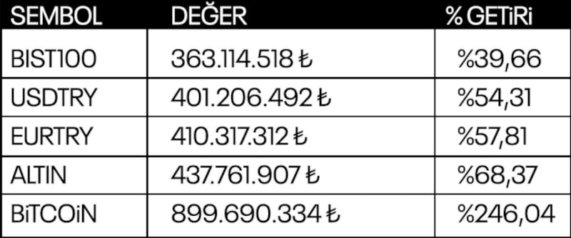 Turan'ın parasının bugün itibarıyla TL karşılığı 437,8 milyon TL olacaktı ve TL bazında getirisi yüzde 68,37’ye ulaşacaktı.