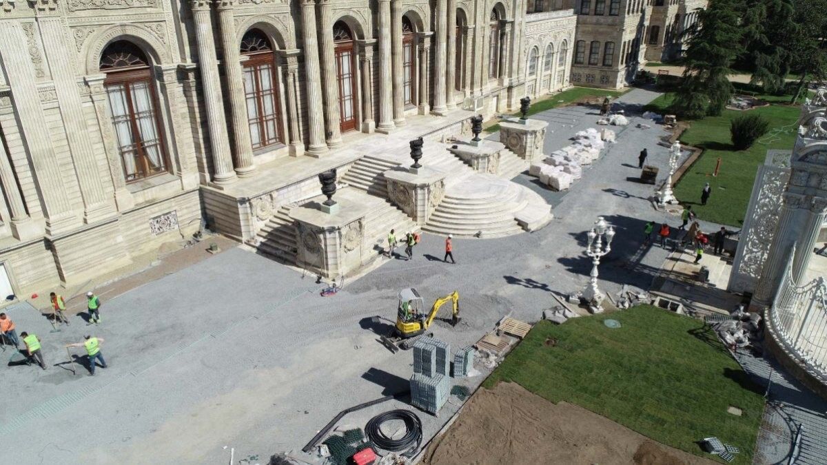 Dolmabahçe Sarayı'nın 30 bin metrekarelik alanında tüm altyapısı ve peyzaj düzenlemesi için kapsamlı bir yenileme çalışması yürütülüyor.