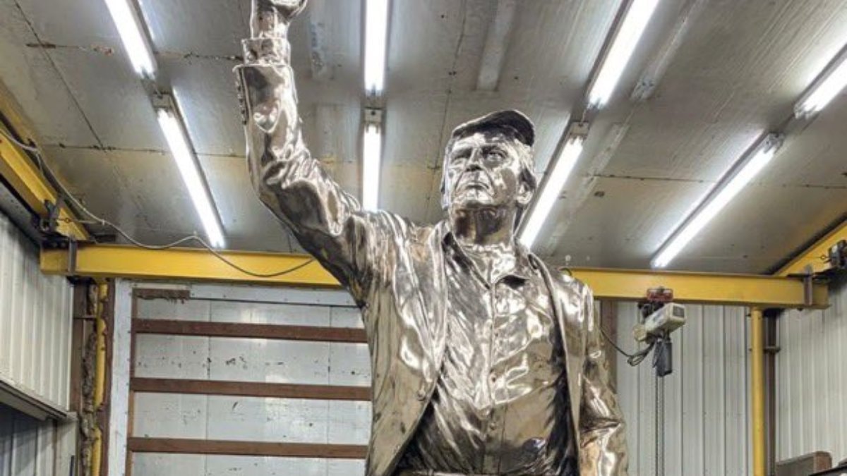 Heykelde Trump'ın uğradığı suikastın ardından sol yumruğunu havaya kaldırdığı ana yer verildi.