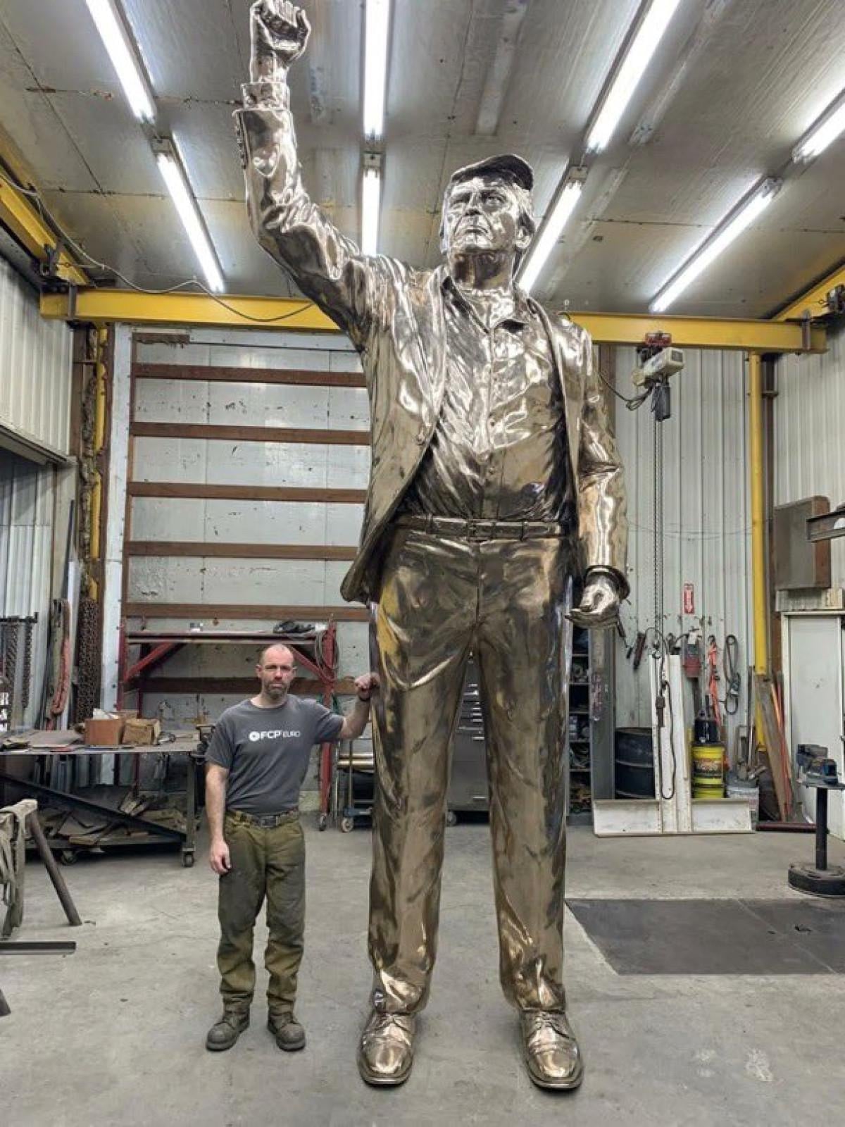 Yemin ederek görevine başlayacak Trump'a tören öncesi bir de bronz heykel yapıldı.