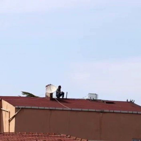 26 Nisan Pazar günü sokağa çıkma kısıtlaması sırasında bir kişi, canını hiçe sayarak çatıya çıktı.