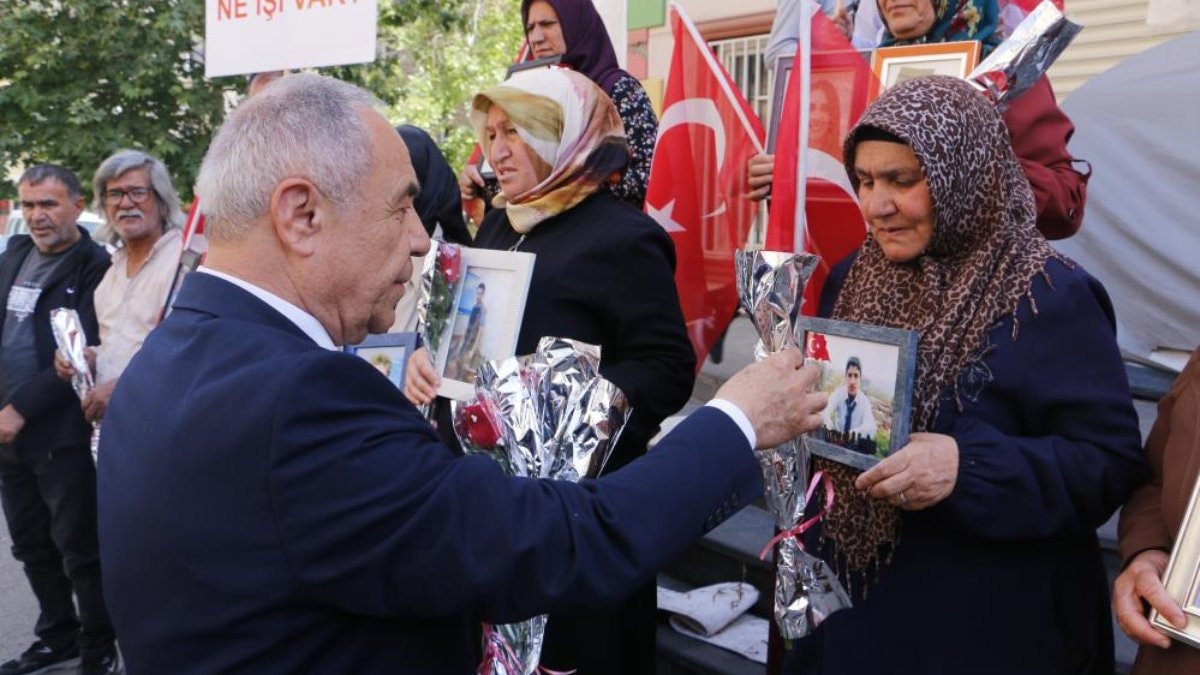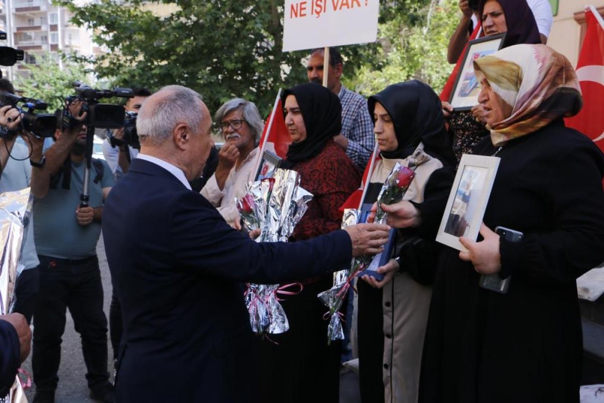 Aileler, HDP önünde evlatlarının yolunu gözlerken Cumhur İttifakı'nda yer alan Demokratik Sol Parti (DSP) Genel Başkan Yardımcısı Hasan Erçelebi ve beraberindeki heyet evlat nöbeti tutan aileleri ziyaret etti.