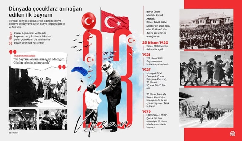 23 Nisan 1920'de Türkiye Büyük Millet Meclisi Ankara'da açıldı. Bu önemli gün, 1921 yılında “23 Nisan” adıyla Milli Bayram olarak kutlanmaya başlandı.