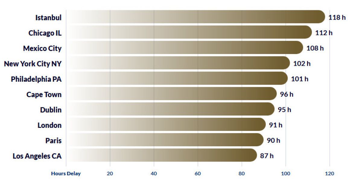 İstanbul'u 112 saat ile Chicago ve 108 saat ile Mexico City takip ediyor.