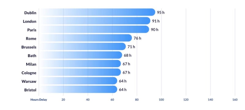 - Avrupa'da Dublin, 95 saat ile ilk sırada yer aldı.