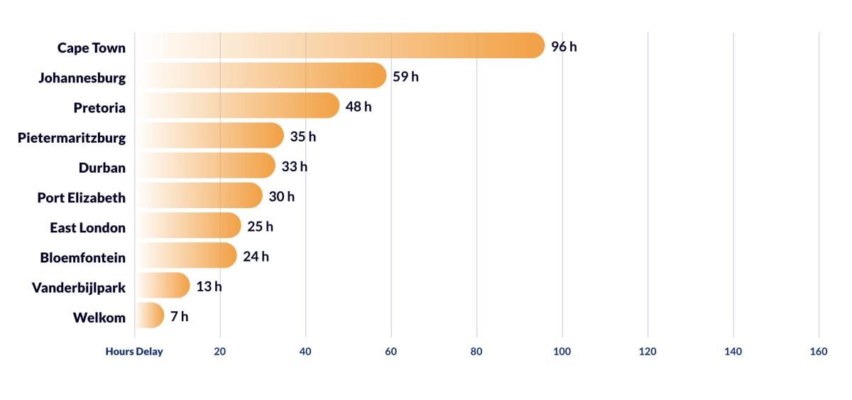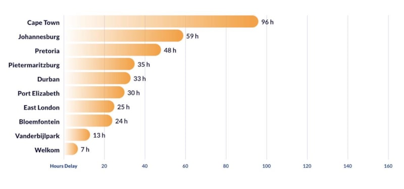 Güney Afrika'nın başkenti Cape Town Afrika kıtasında 96 saatle trafikte en fazla zaman kaybedilen şehir olarak yer alıyor.