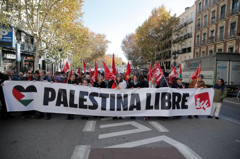 Başkent Madrid'de düzenlenen yürüyüşe katılan kalabalık, İspanya ve Avrupa hükümetlerine "Ateşkes için İsrail'e baskı yapın, soykırımı durdurun" çağrısı yaptı.