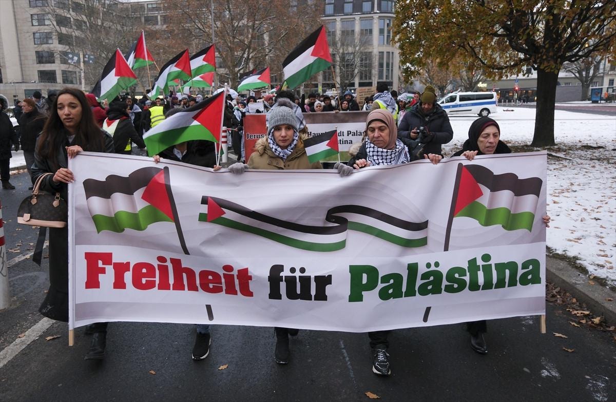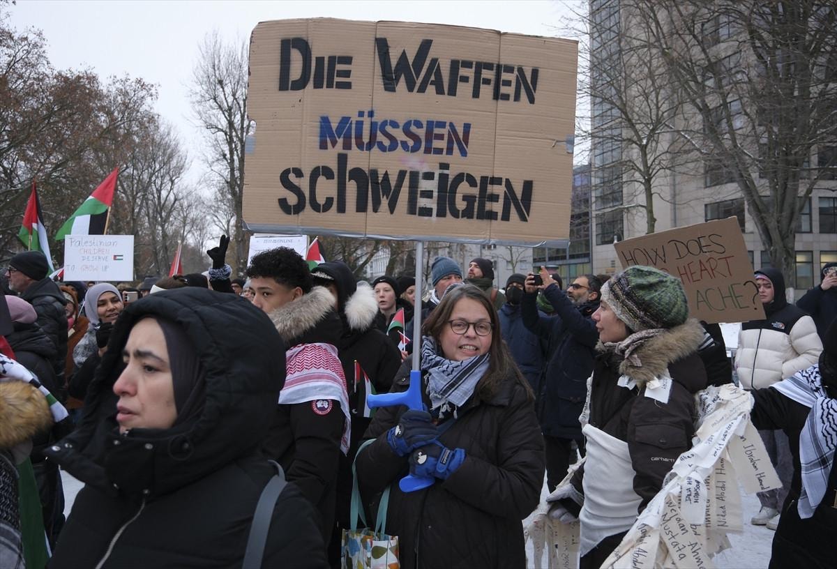 Berlin'de soğuk havaya rağmen "Filistin ile Dayanışma" ve "Gazze'deki soykırımı durdurun" isimleriyle düzenlenen iki ayrı gösteriye yaklaşık 3 bin kişi katıldı.