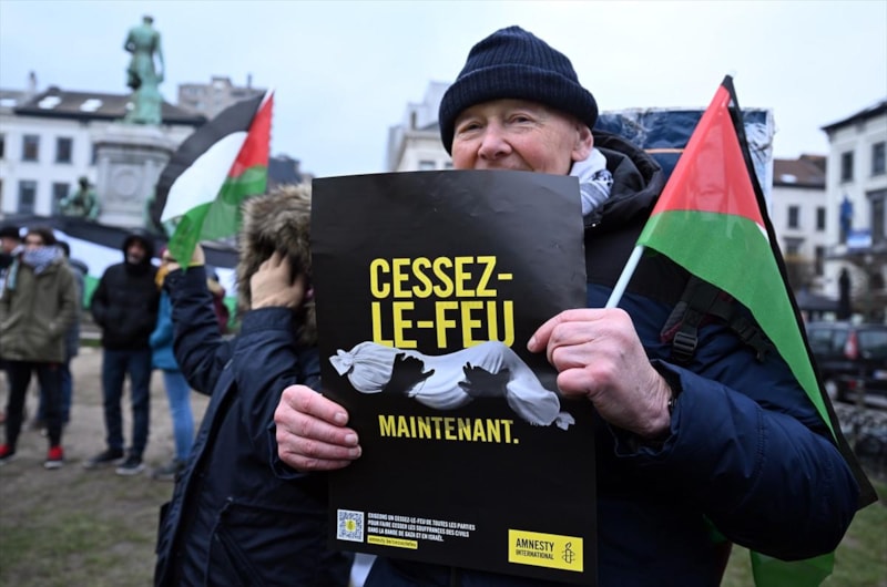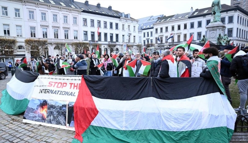 İsrail ordusunun "insani ara"nın sona ermesinin hemen ardından Gazze Şeridi'ne yönelik saldırılarını bu sabah yeniden başlatması üzerine Belçikalı vatandaşlar, AP'nin bulunduğu Lüksemburg Meydanı'nda bir araya geldi.