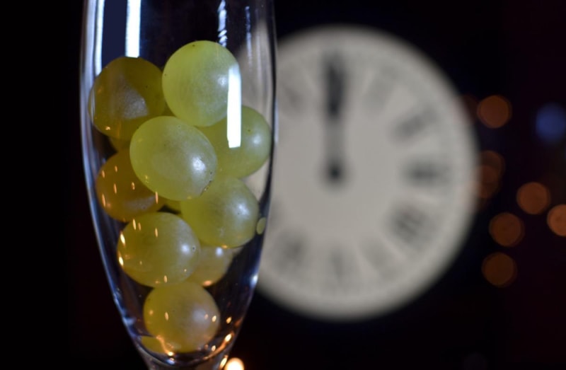 31 Aralık gecesinin son 12 saniyesinde, her bir saniyede bir üzüm yiyen insanlar, yıl boyunca şanslarının iyi olacağına inanır.