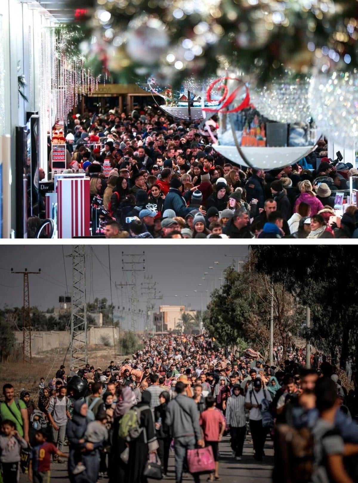 Yılbaşına büyük bir coşkuyla girmek isteyenler ünlü Times Meydanı'na akın ederken, Gazze'de ise şehit olanların naaşı ve yaralılar ise Deir Al-Balah kentindeki Aksa Şehitleri Hastanesi'ne getirildi.